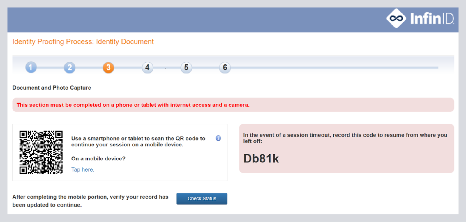 - When you’ve finished all the steps on your phone, go back to your computer and select Check status to verify the ID scan was completed successfully.
