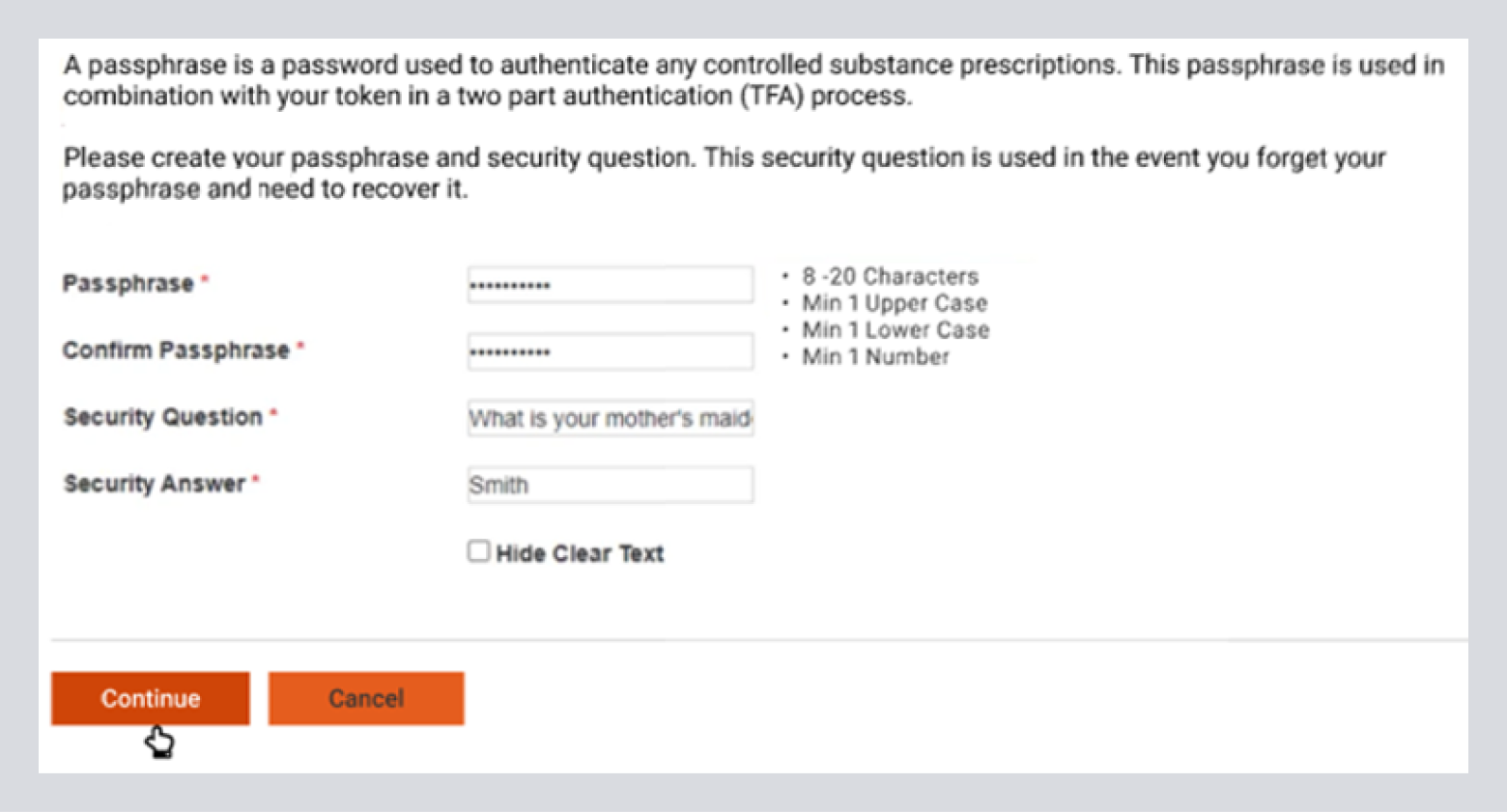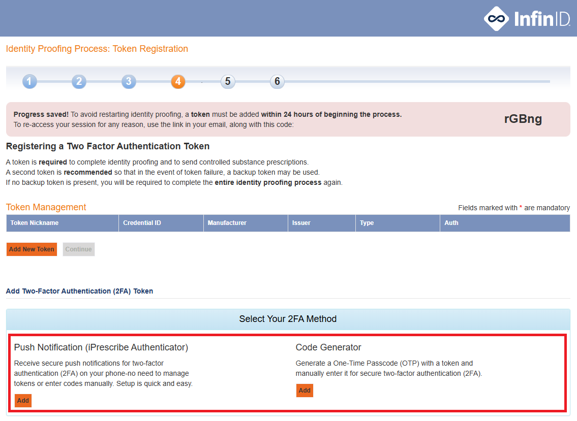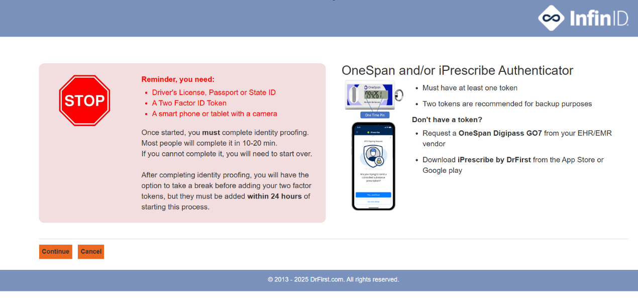If you are planning to prescribe controlled substances, in this step you will register Two-Factor Authentication tokens to prescribe controlled substances.