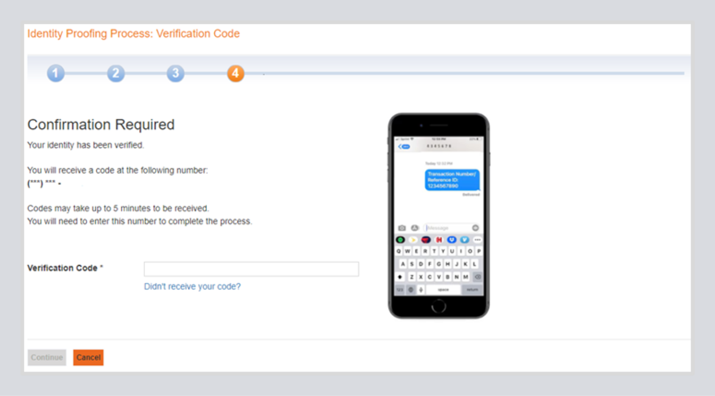 - DrFirst will text you a verification code to the phone number you inputted in Step 2 with Experian.