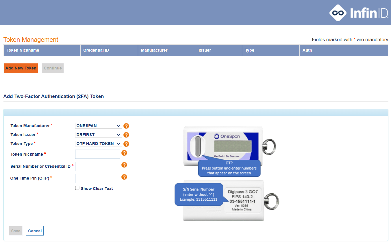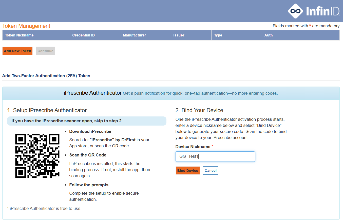 - Token Nickname: Nickname for the token to help identify it (Ex. “iPhone token”, “key fob”, etc.).