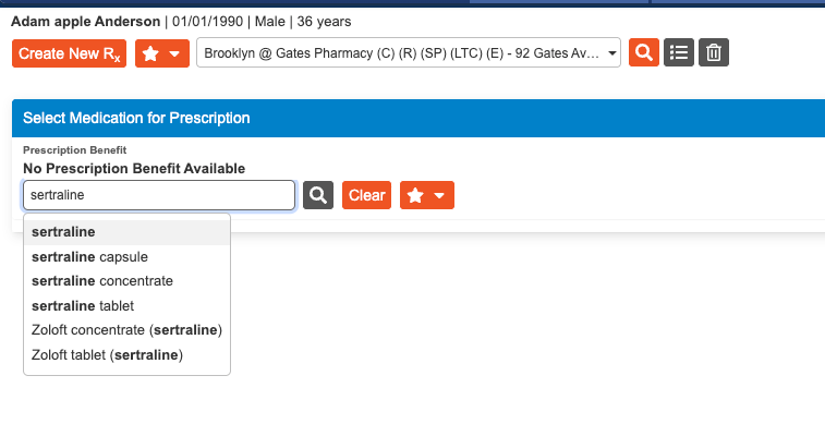 Before you start prescribing, make sure you select the appropriate practice address from the dropdown in the top right corner. Select the practice address that accurately reflects where you are at the time you are writing the prescription.
