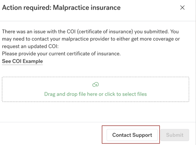 - Document non-compliance: A submitted document (e.g., a Certificate of Insurance/COI) did not meet specific payer requirements.